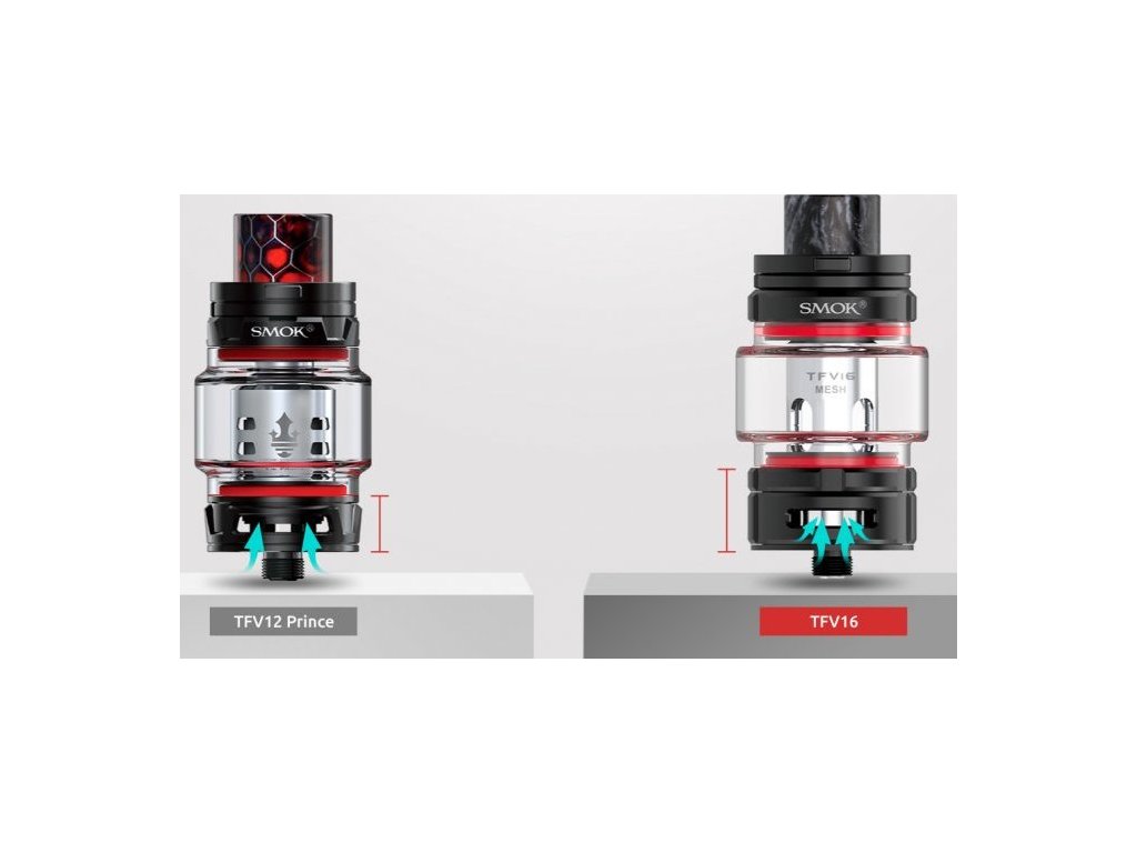 Smok TFV16 je nejnovějším přírůstkem této veleúspěšné řady, který si pro Vás připravil pořádný přívod vzduchu, bezkonkurenční objem nádržky a větší ochranu proti protečení. Konvexní nádržku z Pyrexu o objemu 9ml doplníte dostatečně širokým otvorem, který je ukrytý pod vrchní krytkou s těsněním proti nechtěnému úniku a jednoduchým otevíracím mechanismem. Oproti modelu TFV12 Prince je spodní základna opatřena širším přívodem vzduchu, který proudí přímou cestou ke spirálce. TFV16 spolupracuje s vlastními žhavicí hlavami, a to v provedení Mesh. Celý clearomizer je plně rozebíratelný = snadná údržba.