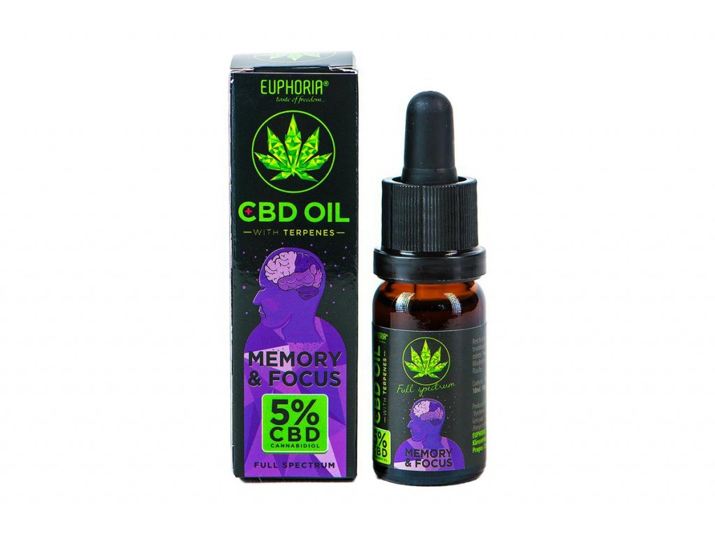 Euphoria CBD olej 5% 500mg s terpeny Memory & Focus 10ml