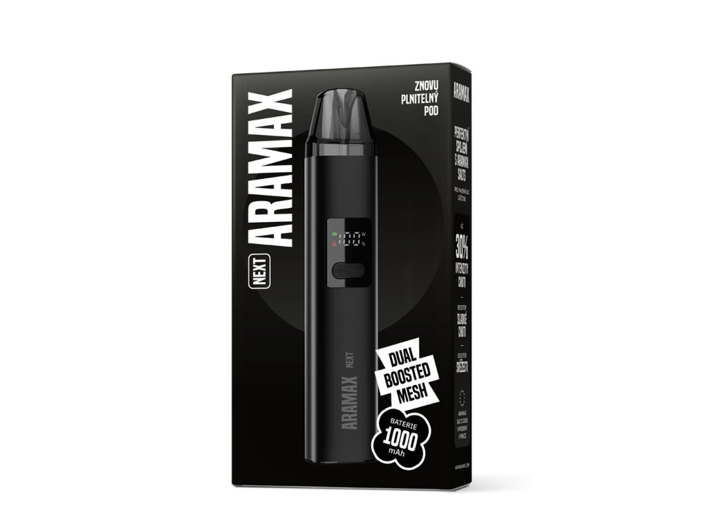 Aramax Next Pod 1000mAh je skvělou volbou pro každého, kdo chce spolehlivou elektronickou cigaretu s jednoduchým ovládáním, moderním vzhledem a příjemným každodenním výkonem.