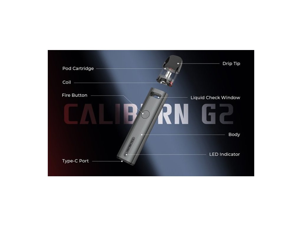 Uwell představuje elektronickou cigaretu Caliburn G2, která je odborníky na vaping považována za nejpropracovanější model této veleúspěšné řady. Tělo baterie je vybaveno monočlánkem o kapacitě 750mAh, LED indikátorem stavu nabití, automatickým spínačem a moderním USB-C portem pro rychlé nabití. Cartridge G2 o objemu 2ml disponuje inovativní regulací přívodu vzduchu pomocí regulačního kolečka - nejlepší nastavení chuti liquidu. Žhavicí hlavy jsou kompatibilní s řadou Caliburn G (0,8ohm a 1ohm) a novinkou o odporu 1,2ohm
