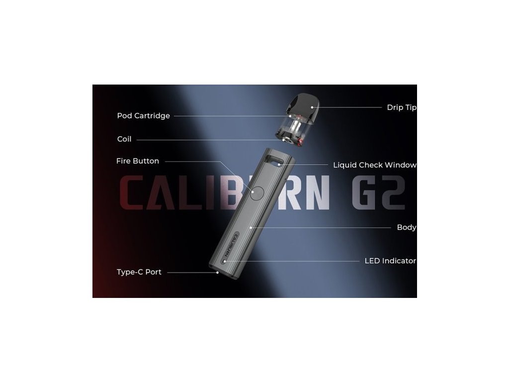 Uwell představuje elektronickou cigaretu Caliburn G2, která je odborníky na vaping považována za nejpropracovanější model této veleúspěšné řady. Tělo baterie je vybaveno monočlánkem o kapacitě 750mAh, LED indikátorem stavu nabití, automatickým spínačem a moderním USB-C portem pro rychlé nabití. Cartridge G2 o objemu 2ml disponuje inovativní regulací přívodu vzduchu pomocí regulačního kolečka - nejlepší nastavení chuti liquidu. Žhavicí hlavy jsou kompatibilní s řadou Caliburn G (0,8ohm a 1ohm) a novinkou o odporu 1,2ohm