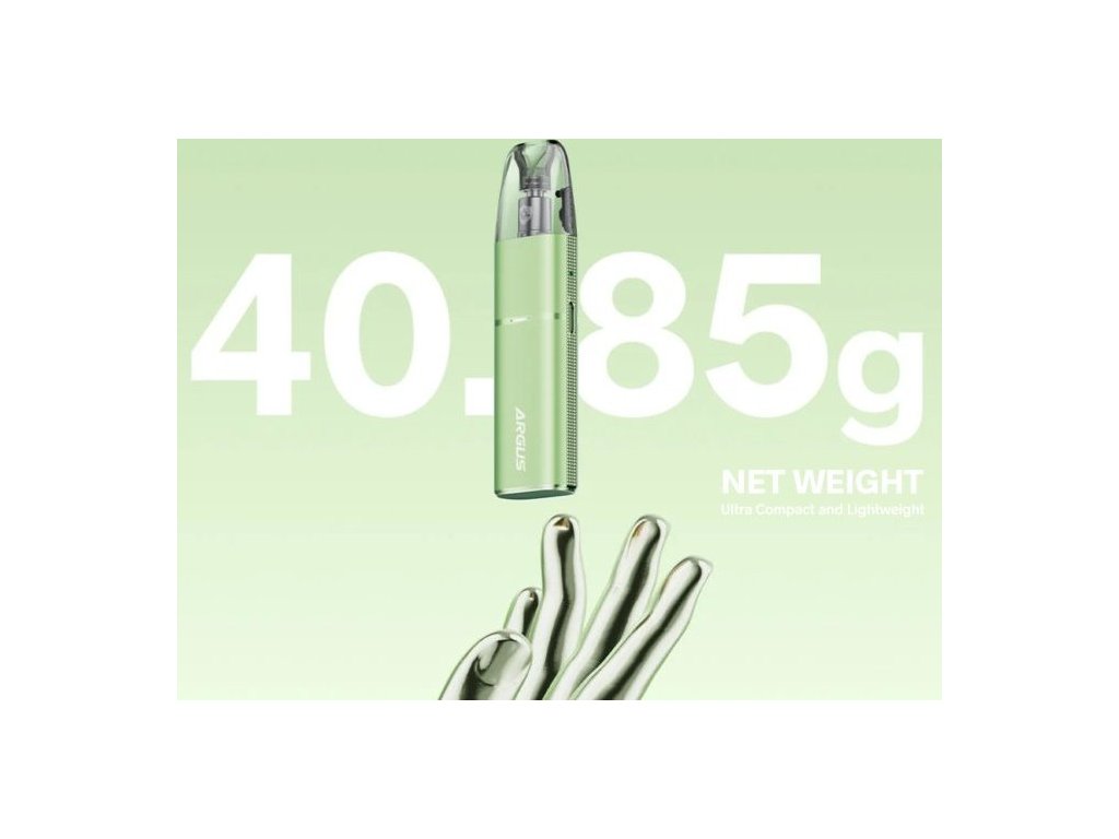 Minimalistické tělo z hliníkové slitiny je lehké a odolné. Přehledná LED indikace stavu baterie informuje o zbývající kapacitě, takže vždy víte, kdy je čas dobít. Výkon 5–30 W se přizpůsobuje použité cartridge a stylu potahu; zvládá MTL (Mouth-to-Lung) i lehčí RDL (Restricted Direct-Lung) vaping.