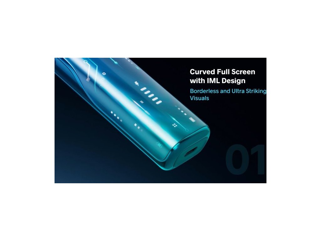 Ovládání je jednoduché a přehledné díky zakřivenému Curved Full Screen displeji, který kromě základních informací nabízí i dynamické „cyber“ vizuály. O špičkovou chuť a stabilní výkon se stará iCOSM CODE 2.0 – čistá chuť až 30 dní, méně protékání a delší životnost cartridgí.