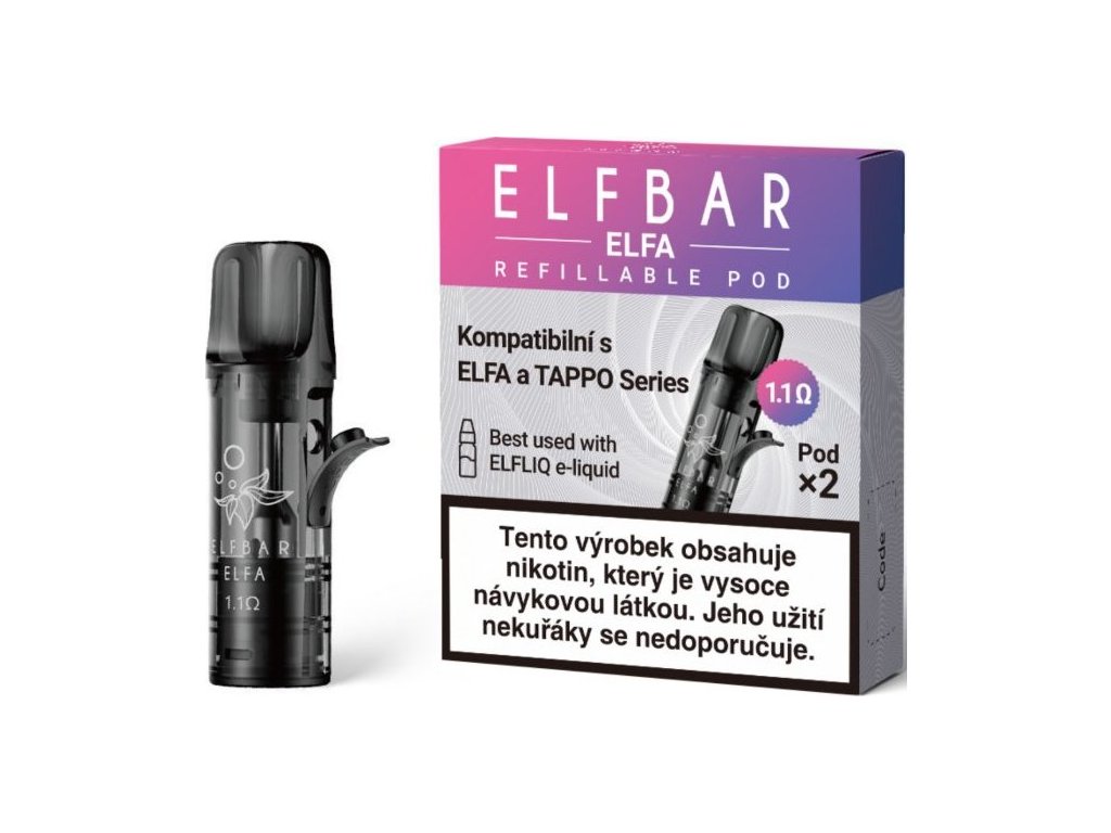 Prázdné cartridge Elf Bar ELFA o odporu 1,1ohm a objemu 2ml. Kompatibilní s e-cigaretou Elf Bar ELFA. Balení obsahuje 2ks.